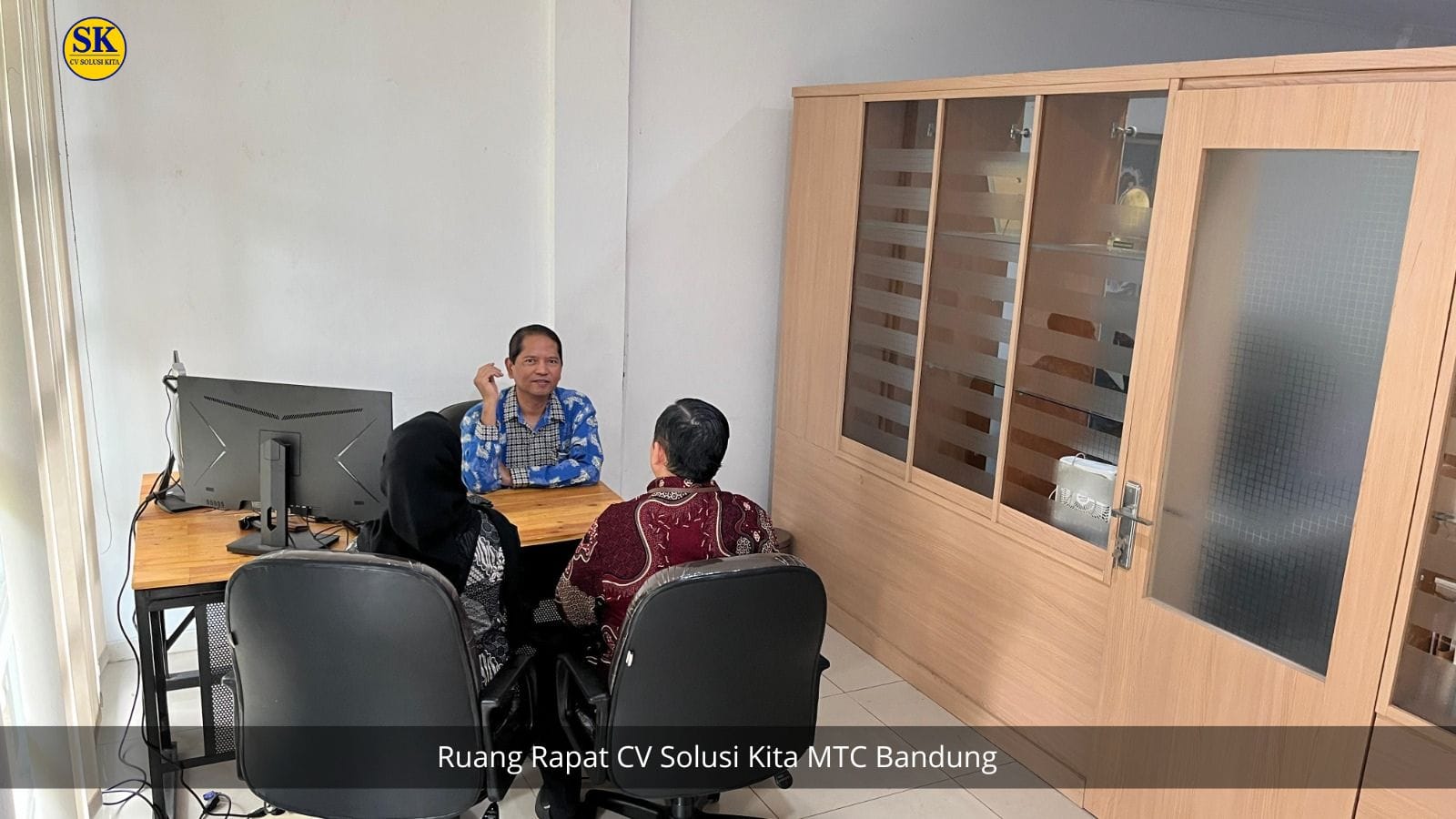 Foto ruang rapat CV Solusi Kita di kantor baru, Komplek Ruko Metro Trade Center (MTC) Blok H-26 Bandung. Ruangan ini digunakan untuk pertemuan, konsultasi, dan pembahasan kasus perpajakan dengan klien, menghadirkan suasana profesional yang mendukung kerahasiaan dan kenyamanan diskusi.
