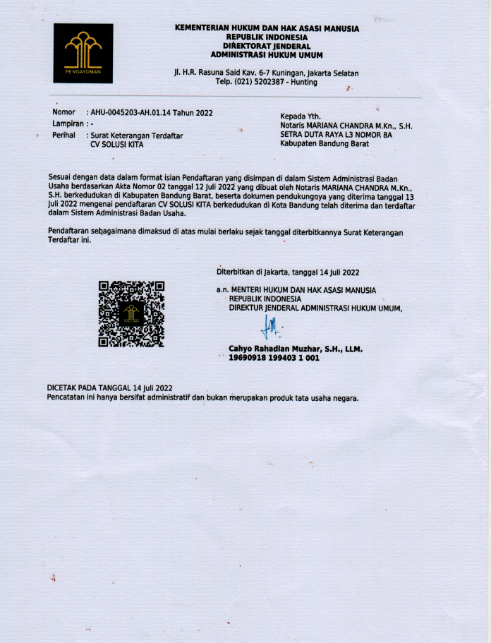 Landasan Izin Kuasa Hukum Pajak Irwansyah berpedoman pada Undang-Undang Nomor 7 Tahun 2021 tentang Harmonisasi Peraturan Perpajakan. Pendampingan ini diberikan dalam kapasitas resmi melalui CV Solusi Kita, yang memiliki legalitas sebagai Kuasa Hukum Pajak untuk mendampingi wajib pajak dalam proses formal dan material perpajakan.